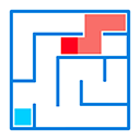 Tap the arrows to navigate the red square to the blue square.